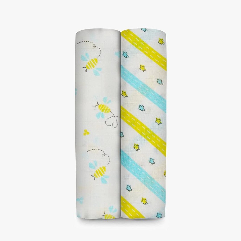 A toddler thing Organic Cotton Muslin Cotton Swaddle(Pack of 2) - Buzzing Bees Multicolor