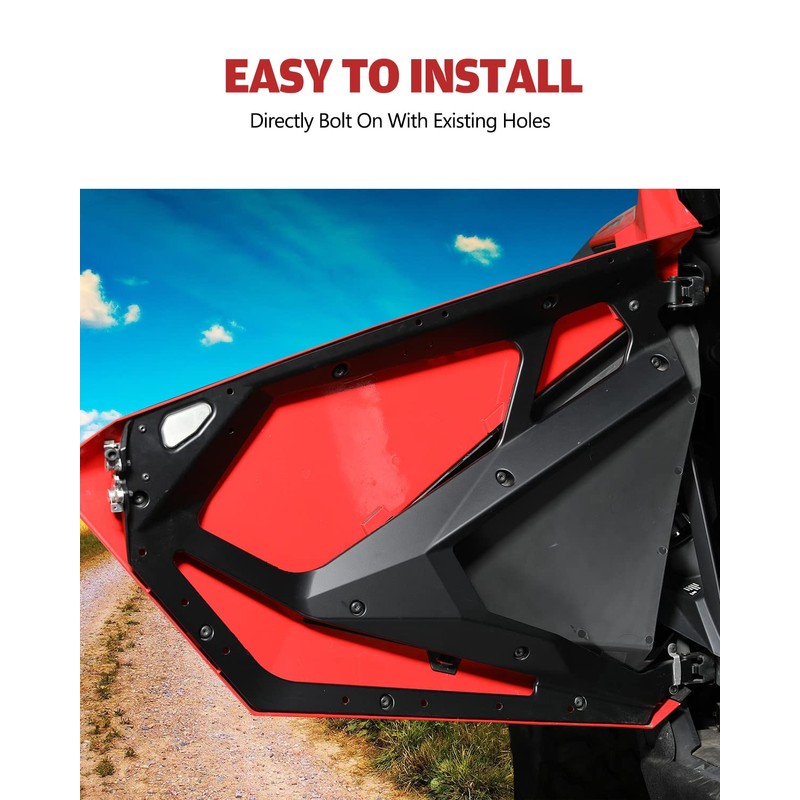 - QUICKLY INSTALLATION:Easy to install,directly bolt on with existing holes,Packaged include:1 pair of front door closeoff inserts for Polaris RZR PRO XP.