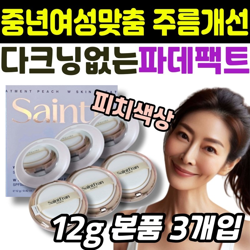 중년 여성 맞춤 다크닝없는 주름개선 파운데이션 팩트 세인트프랑 w 스킨 트리트먼트 콜라겐 피치 쿠션 자