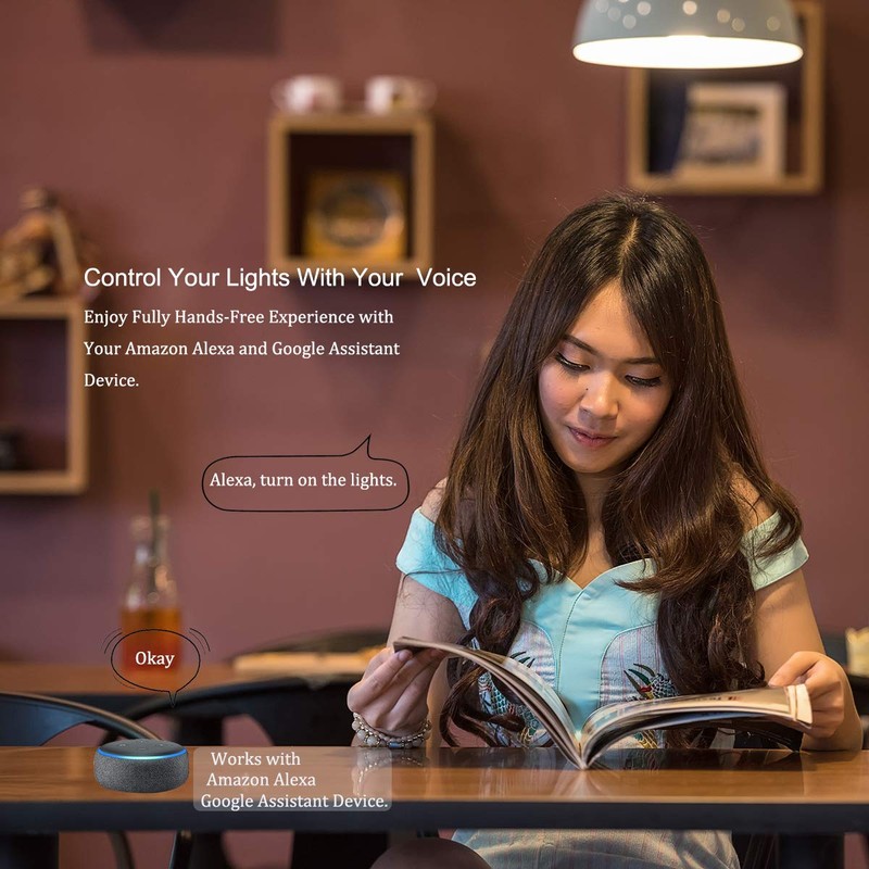- 【16 Million Colors & 8 Scenes】Smart light bulbs can create your favorite light effects with 16 million different colors and adjust the brightness as needed (from 1% to 100%), you can also switch from warm white (2700K) to daylight white (6500K). And there are 8 custom scenes mode (reading, relaxation, party and automatic colour ambiance etc.), match different applications including kitchen, living room, table lamp, cafe, party, etc.