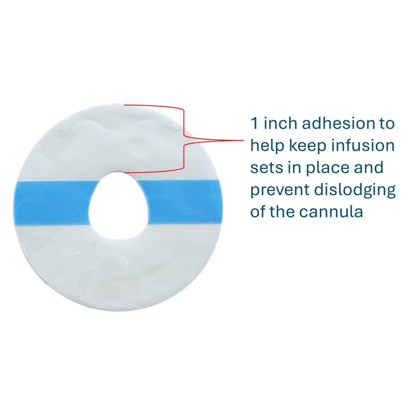 • The exterior layer is waterproof, while the bottom layer has a strong adhesive to prevent peeling. The 1inch adhesion space helps hold the cannula to your skins surface to prevent it fom becoming dislodged.