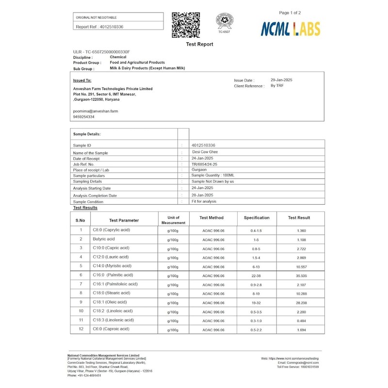 - LAB-TESTED GHEE: We perform a total of 17 lab tests on our A2 Desi Hallikar Cow Ghee to make sure that every batch of our ghee undergoes strict quality checks.