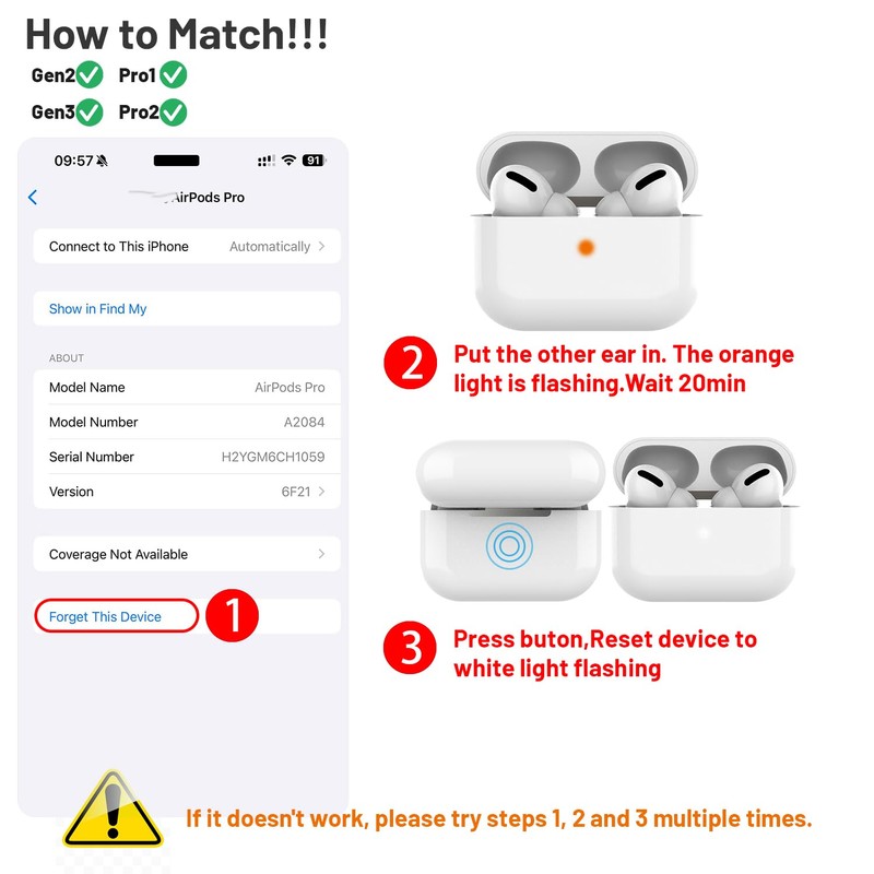 - Pairing Guide:Remove the existing connection from the device's Bluetooth list and place the earbuds in the device to charge (about 30 minutes or so)just like the connection procedure original