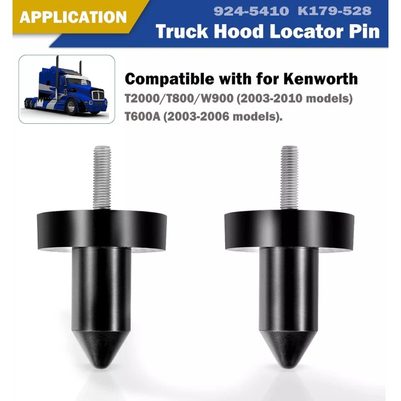 Fitment Direct replacement hood pins poly are compatible with 2003-2010 Kenworth T2000, 2003-2006 Kenworth T600A, 2003-2010 Kenworth T800, 2003-2010 Kenworth W900