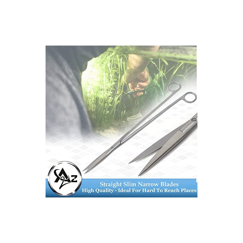 A2Z-Aquascaping Maintenance Tools Accessories,Anti-Rust Stainless Steel Tweezers Scissors Spatula for Aquarium Tank Clean, Fish Tank, Bonsai, Algae Scrapers (12" Scissors - Straight - Silver)