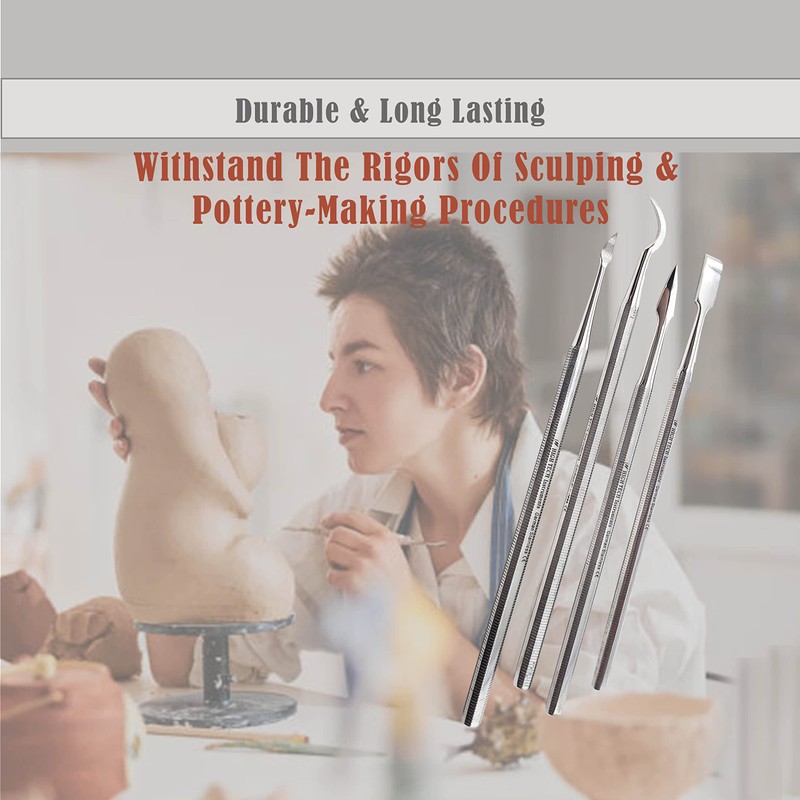 - 4-piece tools cover all sculpting techniques: carving, cutting, chipping, modeling.