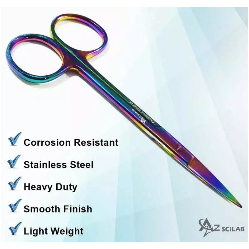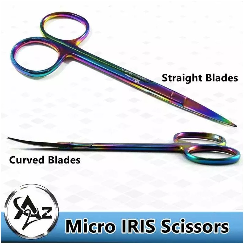 A2Z Scilab Set of 2 MULTI TITANIUM RAINBOW COLOR Iris Micro Scissors 4.5" Straight + Curved