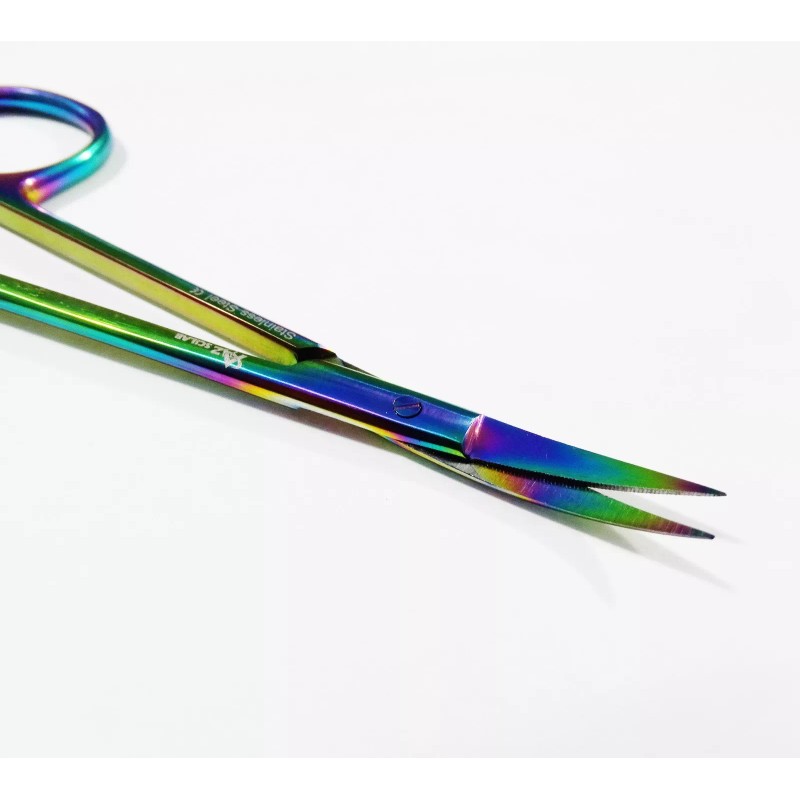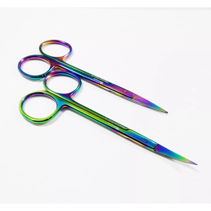 Item : Set of 2 MULTI TITANIUM RAINBOW COLOR Iris Micro Scissors 4.5" Straight + Curved