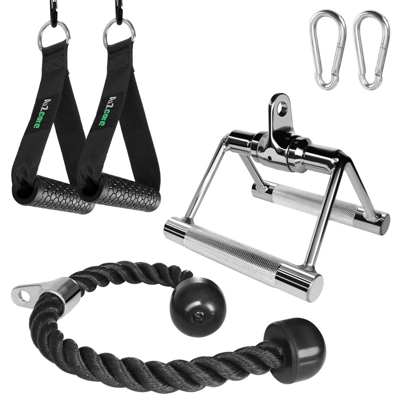 Material: Made of high quality such as solid steel (V Handle, V Shape, Rotating Bar) and braided nylon (Tricep Rope) for durability, prevent from any kind of premature wear, corrosion and rust.