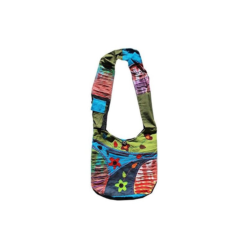 a2zgift4u Women's Cotton Handmade Hobo Flower Patch Hippy Ripped Razor Cut Bag