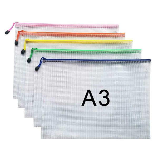 A3 Document Folder File Zipper Bags Plastic Wallets Folder Extra Thick (A3-5PCS)