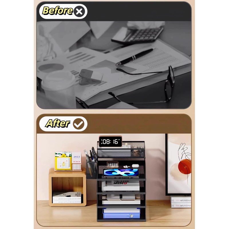 • ✏️ 【Stackable Design】 Stackable trays help maximize desk space while keeping documents within easy reach.