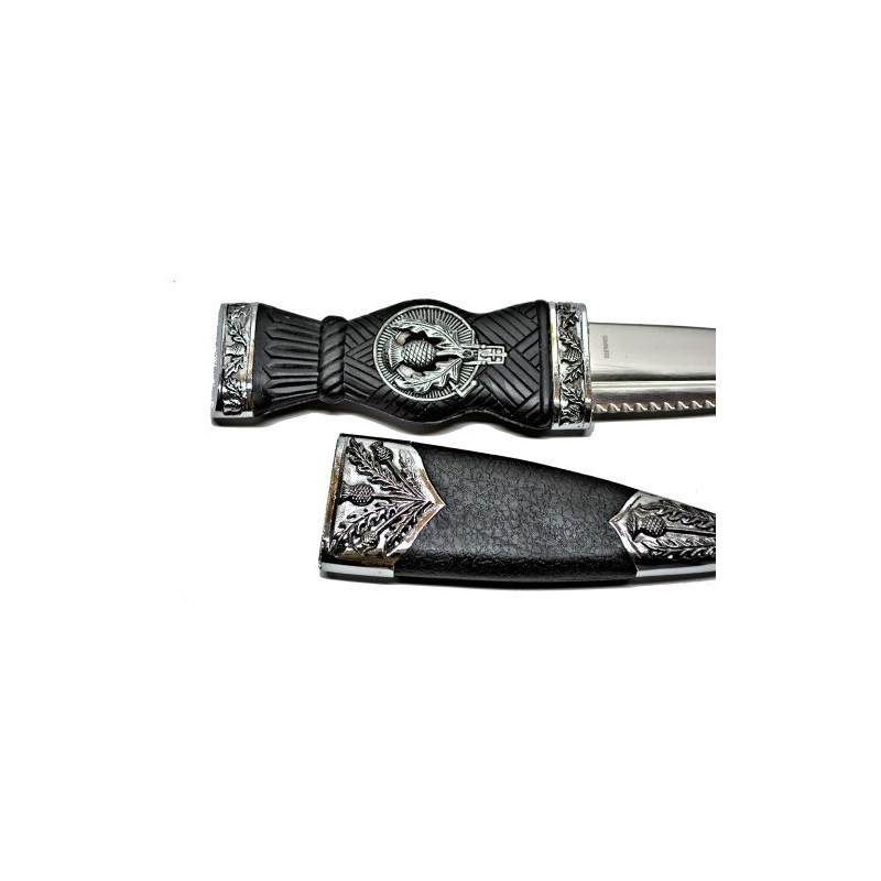decorative thistle elements. It includes a secure scabbard with coordinating