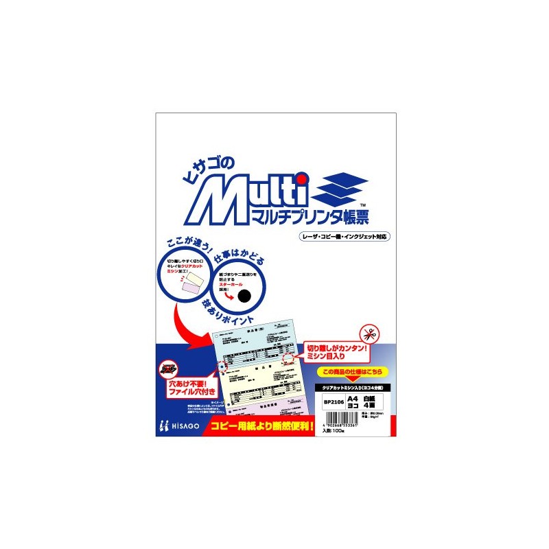 ヒサゴ マルチプリンタ帳票 A4白紙ヨコ4面 (100枚) BP2106