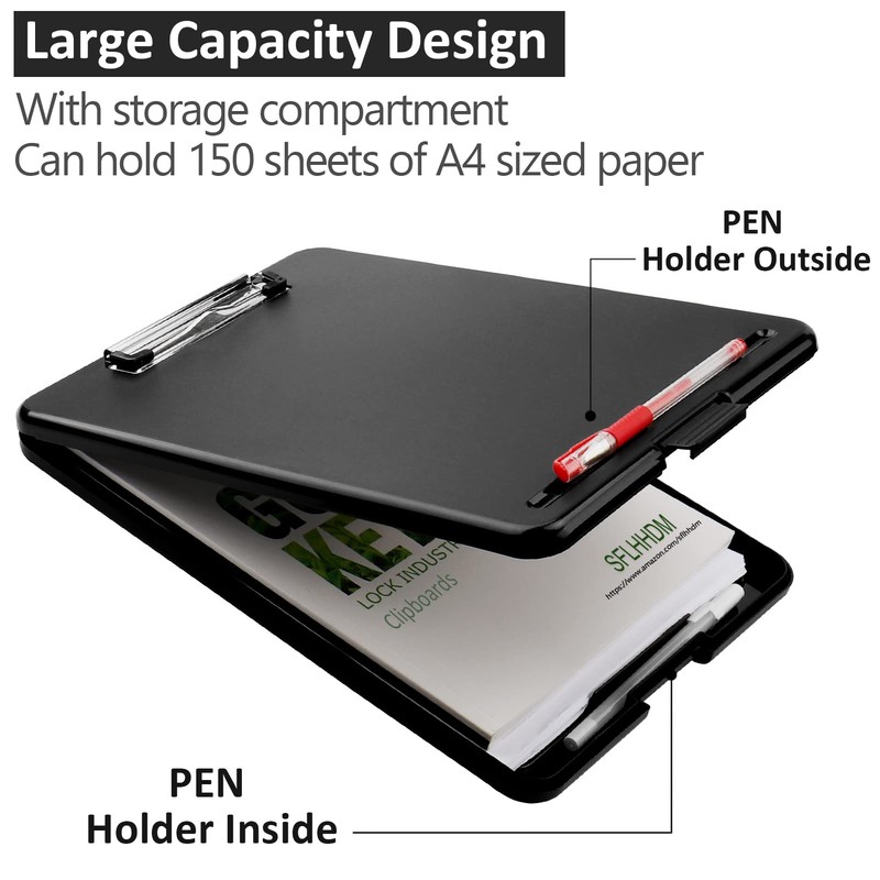 - 📝【Versatiles Storage Space】0.75 inch storage compartment can hold 150 Letter/A4 size papers. Heavy duty low profile clip can hold 50 sheets of paper. Equipped with a divider for pencil or pen, store the items you need in one place, can become an organized mini desk.