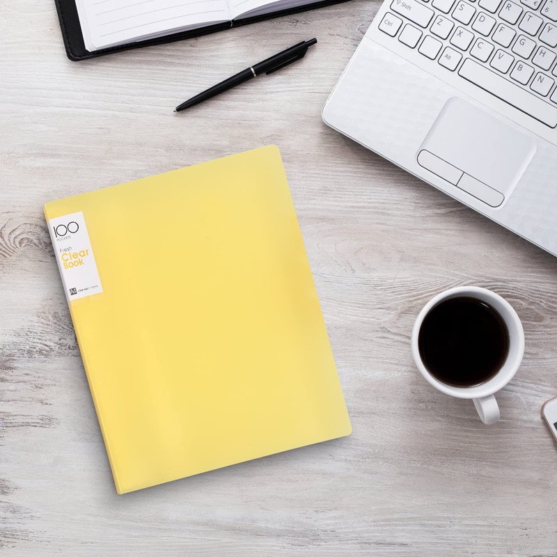 - 【Package Content】: the package includes an A4 display book with 100 transparent pockets, the folder size is 23 x 31 cm and the transparent pocket size 22 x 30 cm, suitable for A4 size paper. Four colours are available, mainly yellow, green, blue, pink.