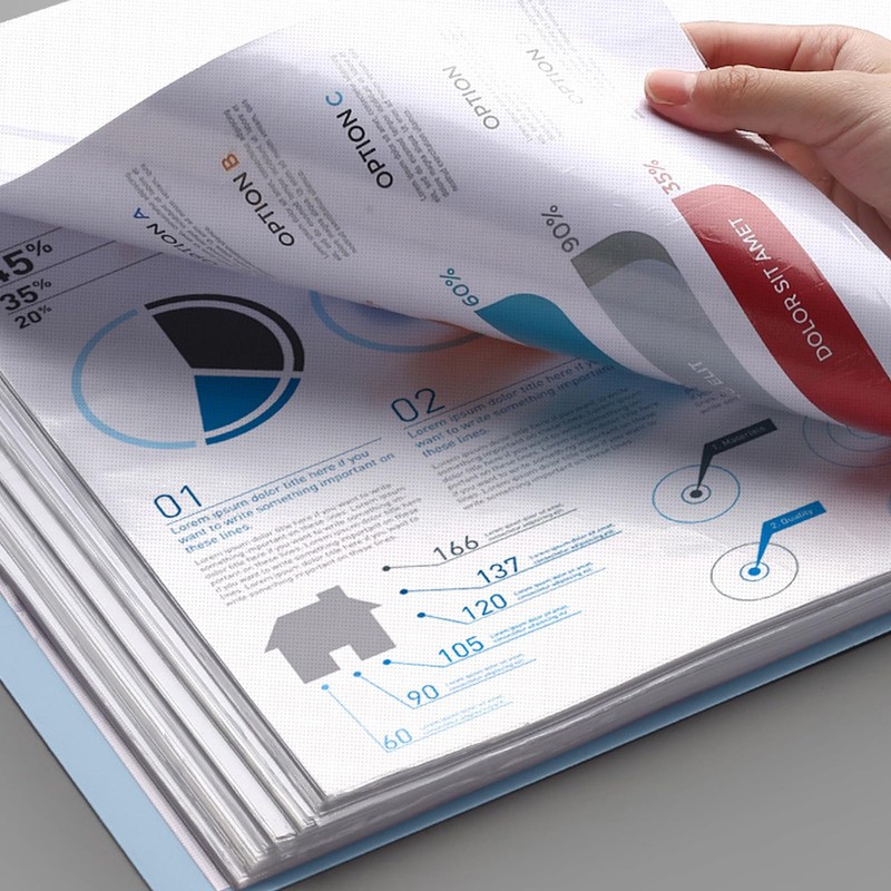 - Applicable: A4 display book. Perfect for presentations, slides, testimonials, brochures, reports, resumes, certificates, frequently readable content such as sheet music, manuals, menus, etc.