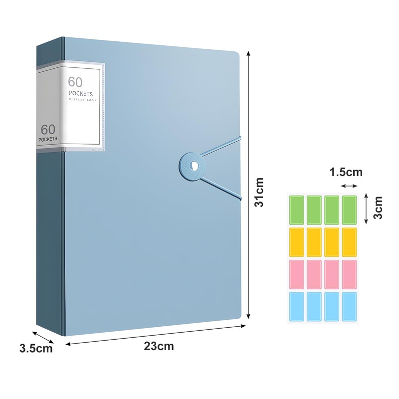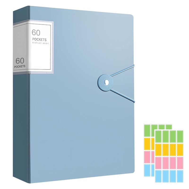 A4 Display Folders, 60 Pockets Display Book Folders with Plastic Sleeves, Folders with Plastic Pockets & Safety Rope Presentation Folder Project Folders or School & Offices Business (Blue)