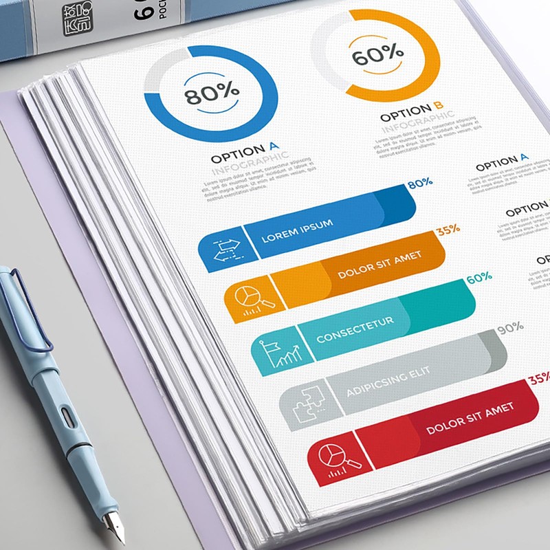 A4 display documents have plastic pockets, which are very convenient to put in and take out documents. It can save a lot of time and energy to manage your documents. The documents will not be lost or found, and the integrity of the documents can be protected at the same time.