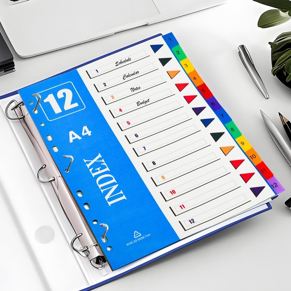 - GREAT VALUE WITH 4 SETS: Includes 4 packs of 1-12 numbered dividers, making it ideal for daily, monthly, or annual planning. Perfect for documents, notes, reports, or schedules.