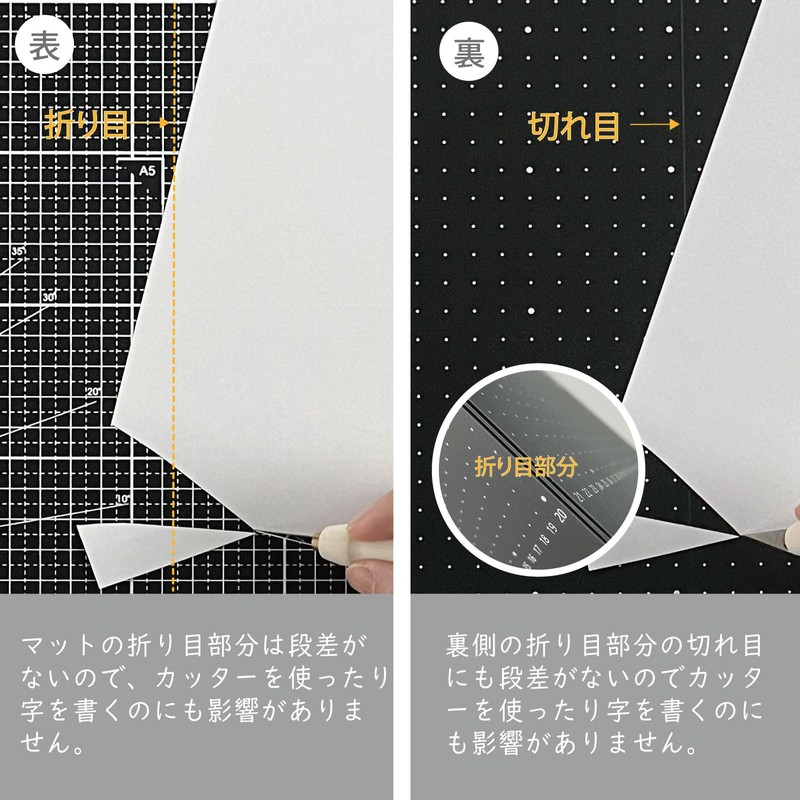 - The cutter mat folds in half for easy carrying and storage. When cutting, unfold to A4 size, and fold to A5 size for smaller storage