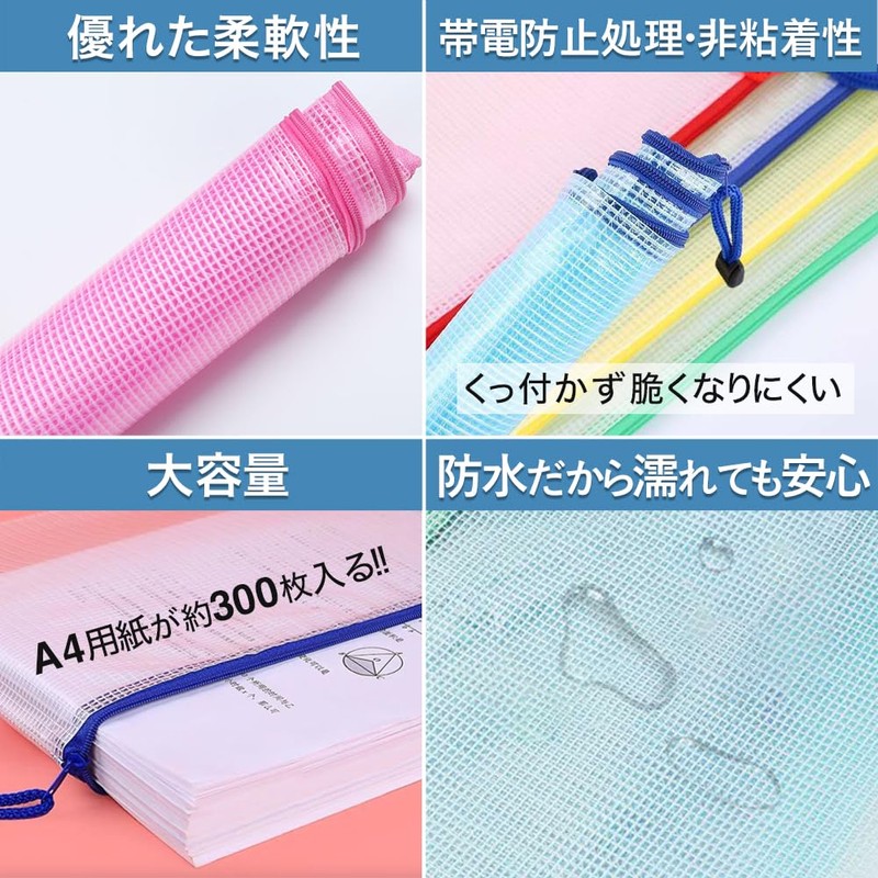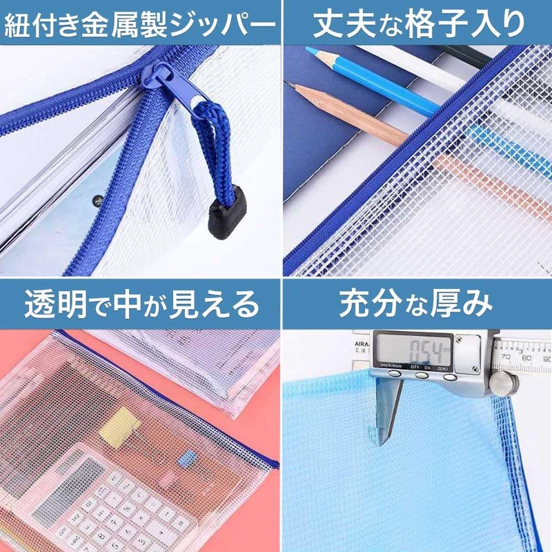 A4 Size Zippered File Bags, Set of 10, Mesh, Zipper Bag, File Folder Case, PVC, Waterproof, Cash, Receipts, Receipts, Collecting Bags