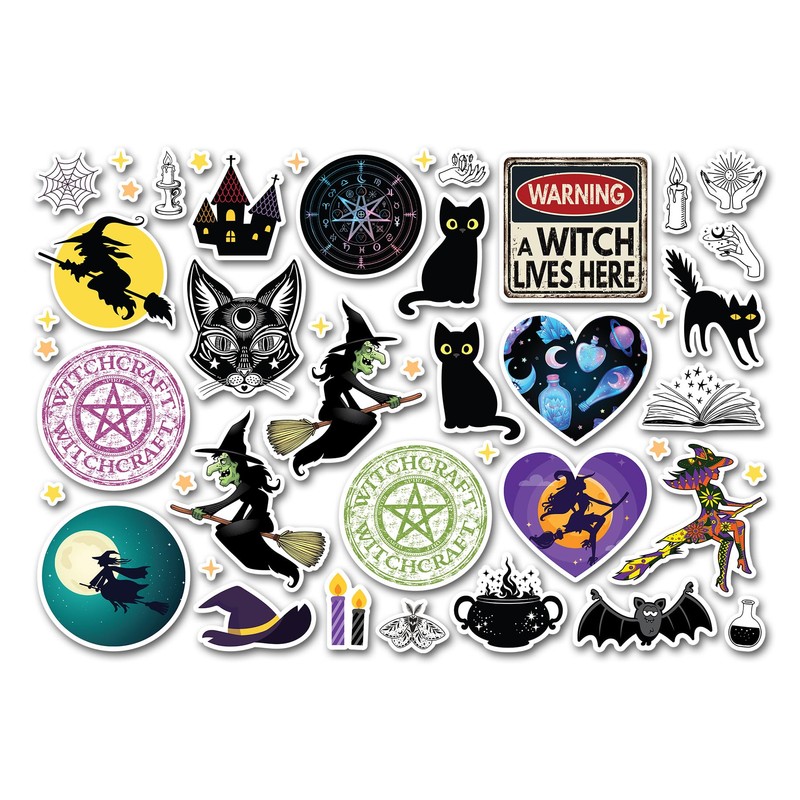 A4 Sticker Sheet Witch Vinyl Stickers - Witchcraft Cat Bats Men Women Kids Hobbies Hobby Travel Scrapbooking Journal Decor Gift #82170