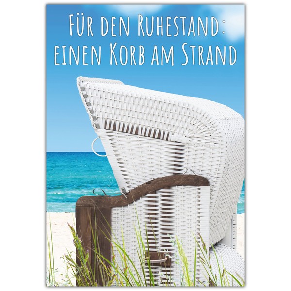 - Recovery on the beach – the greeting card with beach basket is ideal for saying goodbye to a dear work colleague, employee or supervisor to retirement and as a side dish for a farewell gift.