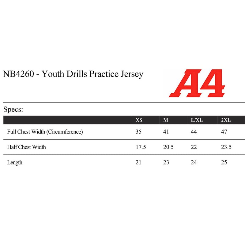 A4 Youth Drills Polyester Mesh Practice Jersey L/XL BLACK