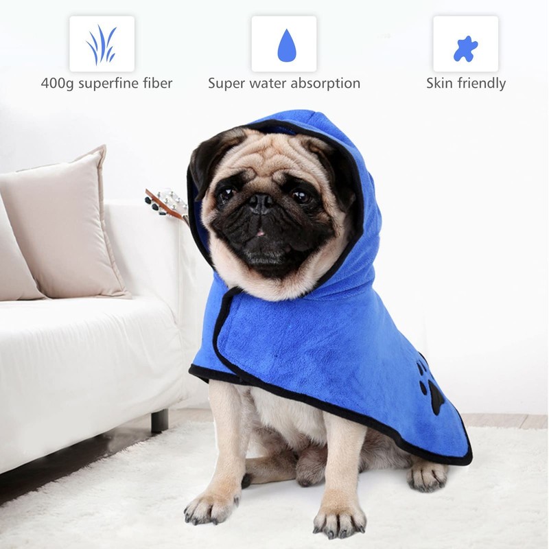 - Effortless Drying: No more wet mess! Our quick-drying dog bathrobe towel soaks up water fast, so your pup goes from damp to dry in no time. Say bye to wet floors and hello to quick cuddles with these robe for pets.