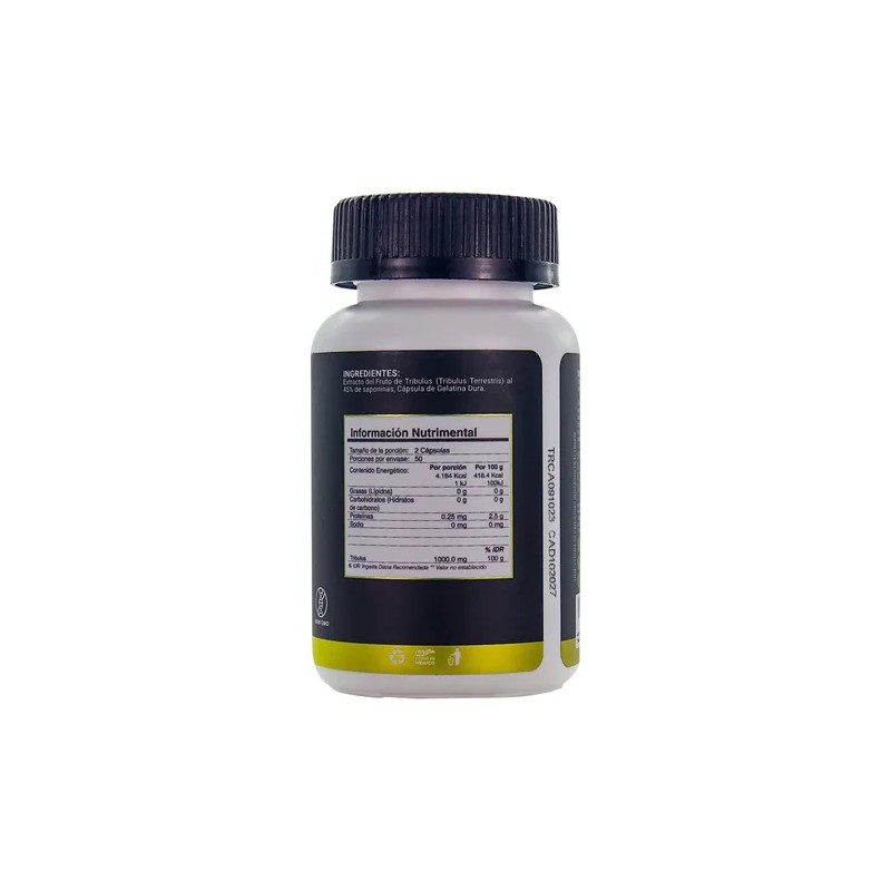Ingredientes: Tribulus Terrestris. Ingredientes de la cápsula (gelatina y agua purificada).