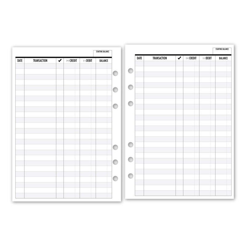 A5 Checkbook Registers Planner Insert Refill, 5.83″ x 8.27″, Fits 6-Rings Binders - Filofax, LV GM, Moterm, Choose Quantity