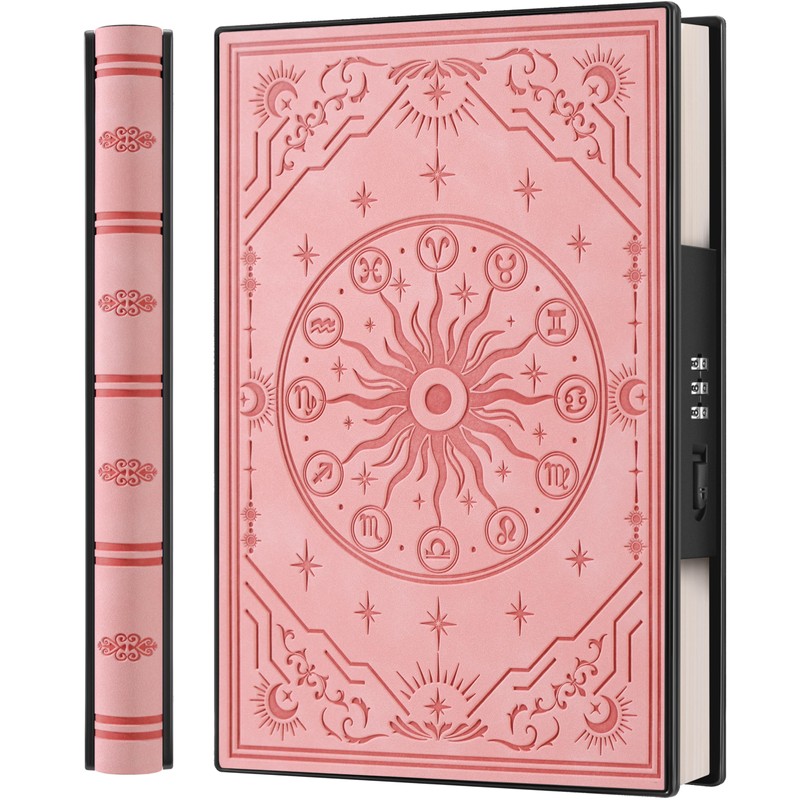 A5 Diary with Combination Lock and 180° Sleep Flat Made of Soft PU Leather with Embossed Zodiac Design - Ideal for Adults, Women, Men and Teens for Privacy - Pink