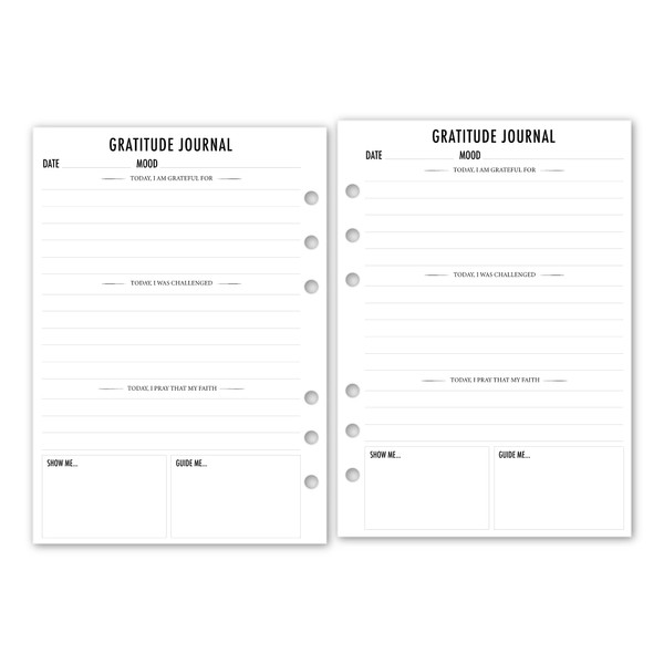 A5 Gratitude Journal Planner Insert Refill, 5.83″ x 8.27″, Fits 6-Rings Binders - Filofax, LV GM, Moterm, Choice of Quantity