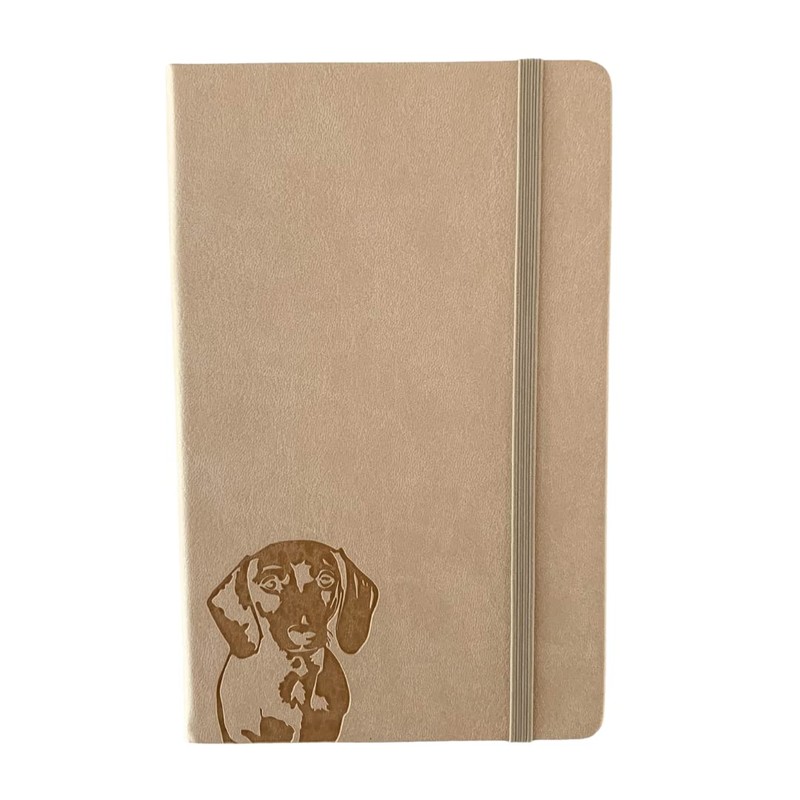 A5 Hardcover Dachshund Notebook - PU Leather, 100gsm Lined Pages, Bookmark, Dog Notebook or Journal (Beige)