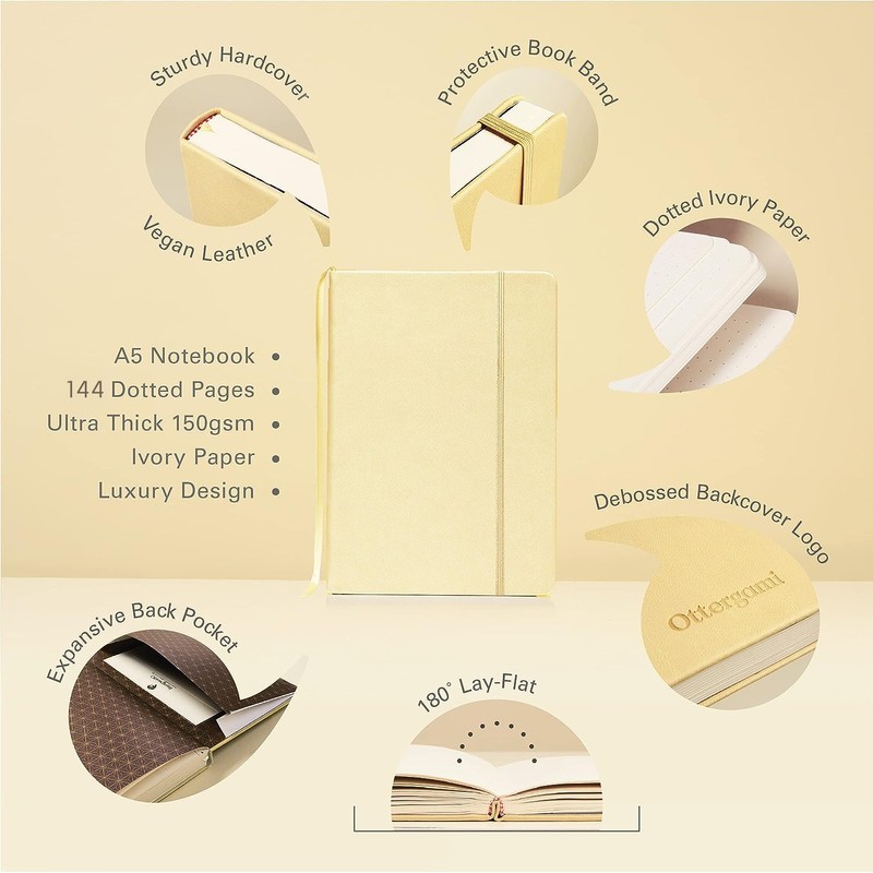 • Ultra thick 150gsm paper - A5 paper is suitable for almost all pens. No ghosting to keep all your pages flawless