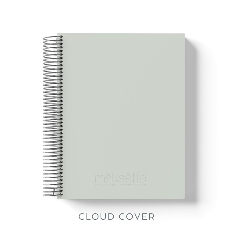 A5 Quarterly Undated Goal-Setting + Daily Planner - 120 GSM Recycled Paper, Luxe Vegan Leatherette Cover, MäksēLife Goal-Setting System, Full Daily Planning Pages (Cloud)