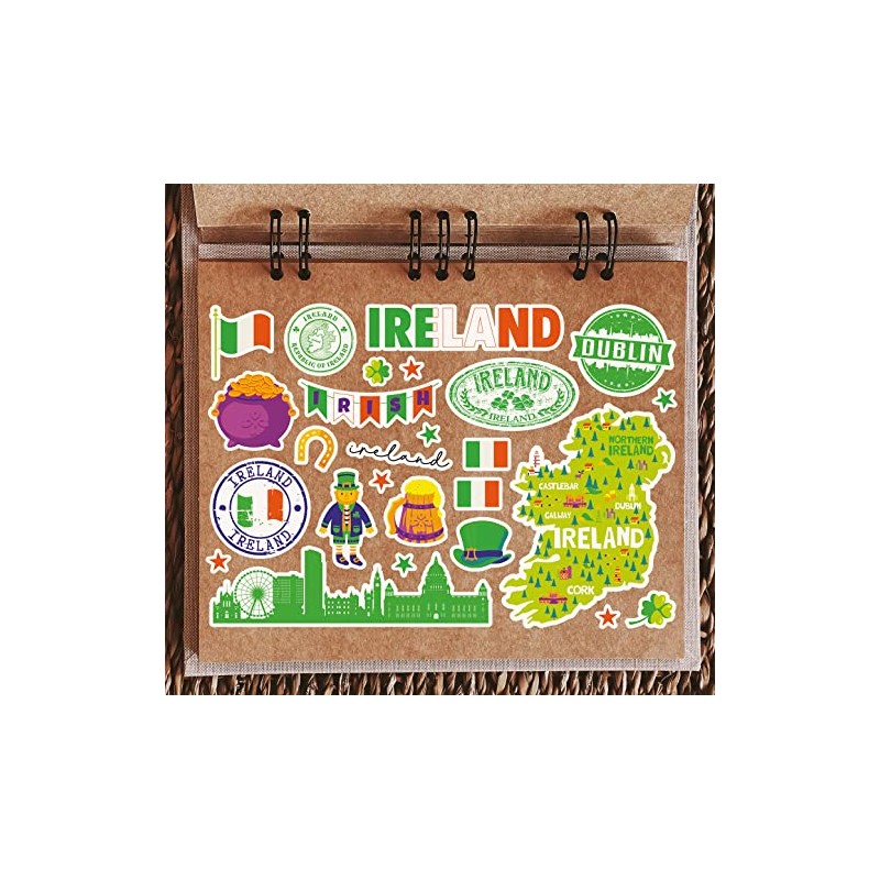 A5 Sticker Sheet Ireland Landmarks Vinyl Stickers - Bright Irish Map Airport Skyline Stamp Flag Travel Holiday Country City Aesthetic #80416
