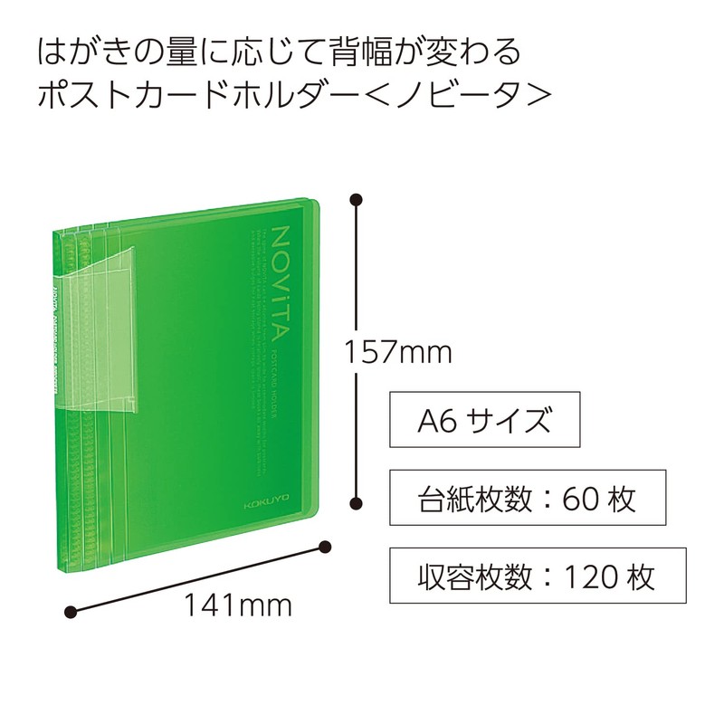 コクヨ ファイル ポストカードホルダー ノビータ A6 60枚 緑 ハセ-N60LG