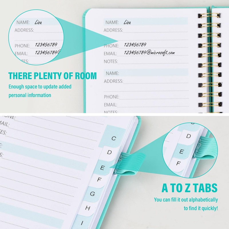 - A-Z labels: The spiral phone book has unique A-Z registers that make it easier to record and retrieve information in alphabetical order and save you time and effort.