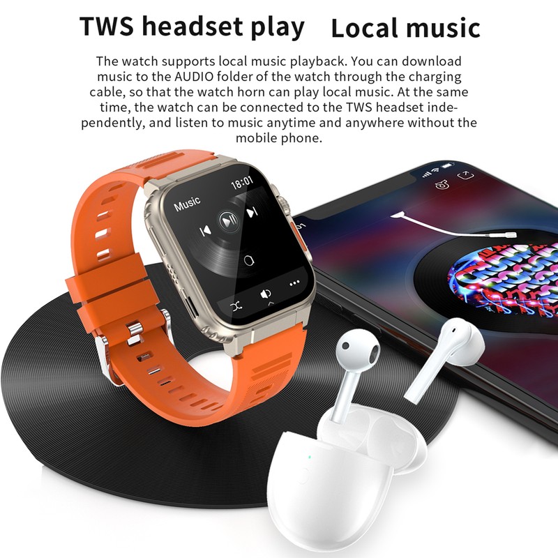 【Local Music】The watch supports local music playback. You can download music to the AUDIO folder of the watch through the charging cable, so that the watch horn can play local music. At the same time, the watch can be connected to the TWS headset independently.