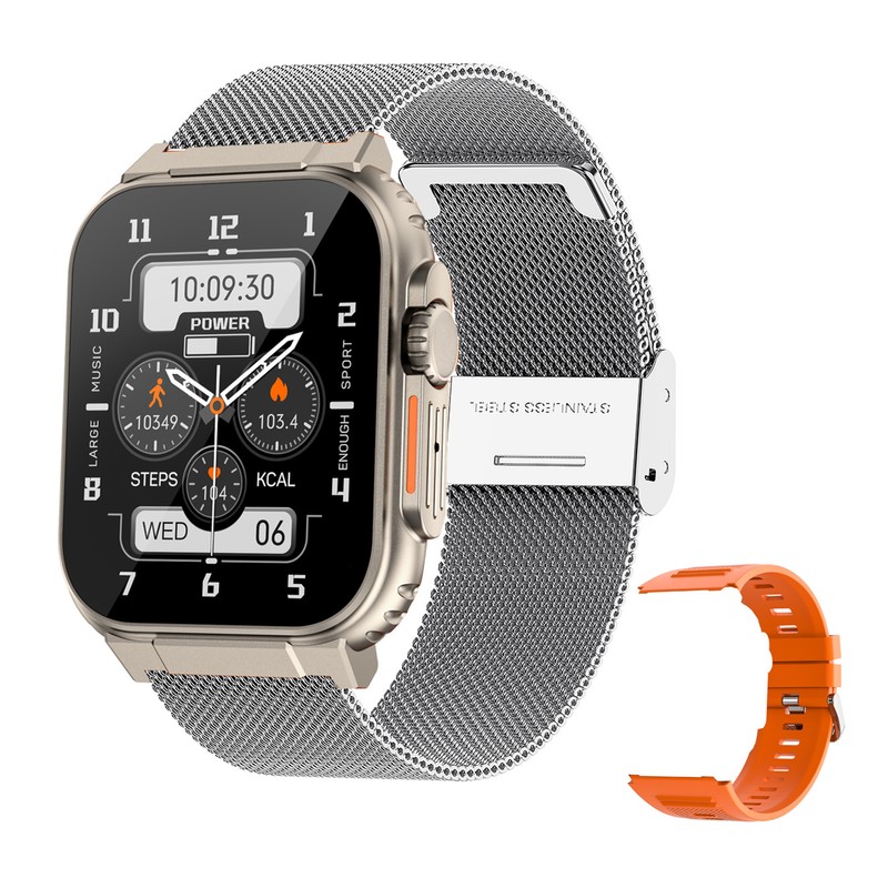 【Smartwatch】The smartwatch, measuring 1.96 inches, combines the functions of a watch, weather forecaster, phone, and health monitor. It can record various health metrics such as sleep quality, body temperature, blood pressure, and heart rate. The system is compatible with both Android and iOS.