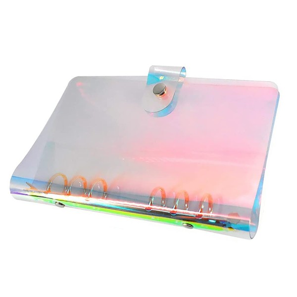 A8 6-Ring Rainbow Binder Cover, Clear Refillable Paper PVC Notebook Cover, Loose Leaf Personal Planner Binder, Pack of 1