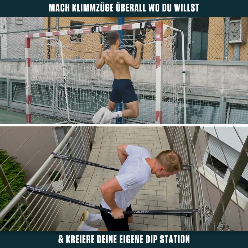 - Vielseitige Nutzung: die einzelnen Slings können als Gewichtsgürtel, Klimmzugstangen-Ersatz, Dip-Bar oder Parallettes verwendet werden. Sie bieten auch eine Ankerfunktion für Widerstandsbänder und Pulleys