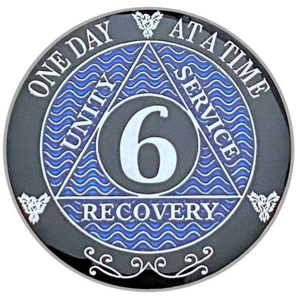 AA 6 Year Silver, Blue Color Plated Medallion, Alcoholics Anonymous Coin