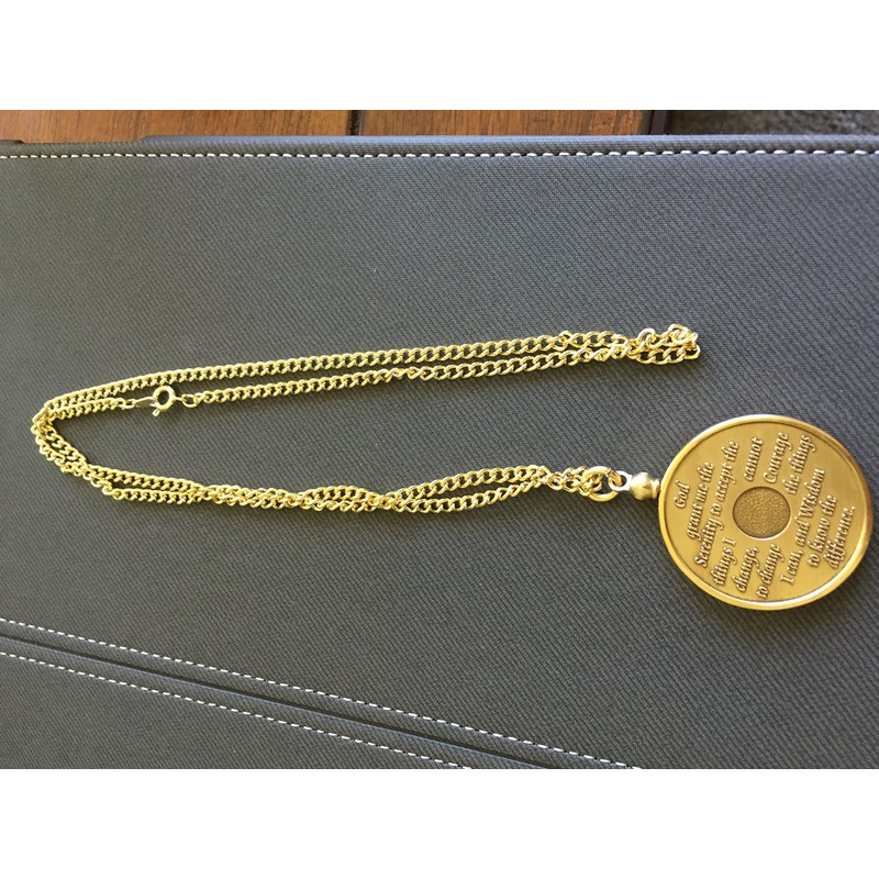 AA Alcoholics Anonymous Medallion Chip Holder Necklace 24 Gold Tone