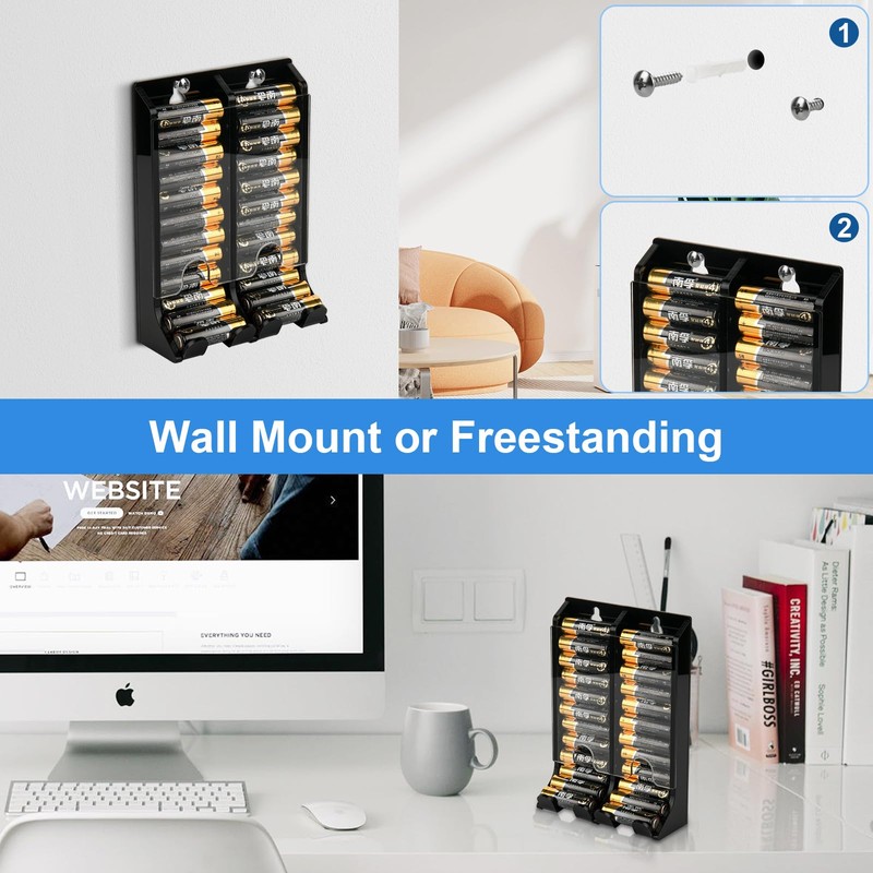 【Keep Your Batteries Organized】This practical design provides an easy-to-use first-in-first-out battery storage solution, keeping them neatly organized and within reach, holding up to 22 AA batteries easily and conveniently