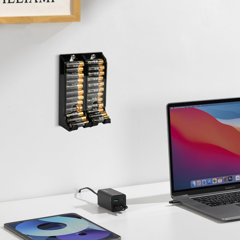 【Easy Access To Batteries】The battery organizer holds your batteries neatly and vertically. Help you keep batteries all neat and tidy, so you can find them easily! Batteries replenished from top and accessed from bottom, you can easily remove the battery with your fingers