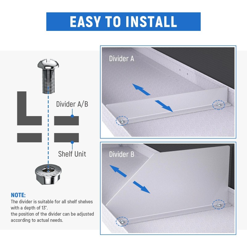 | This set includes 3 high-quality and sturdy highten shelf dividers, which are suitable for AA Product 16-inch deep van shelving storage |