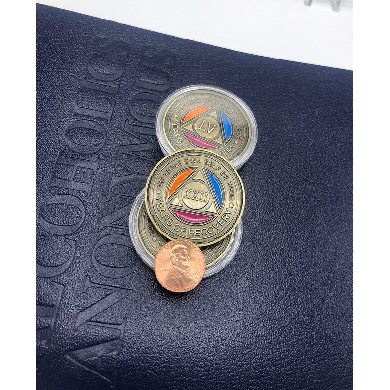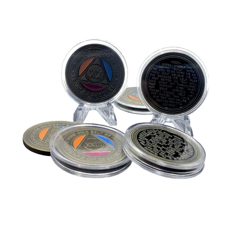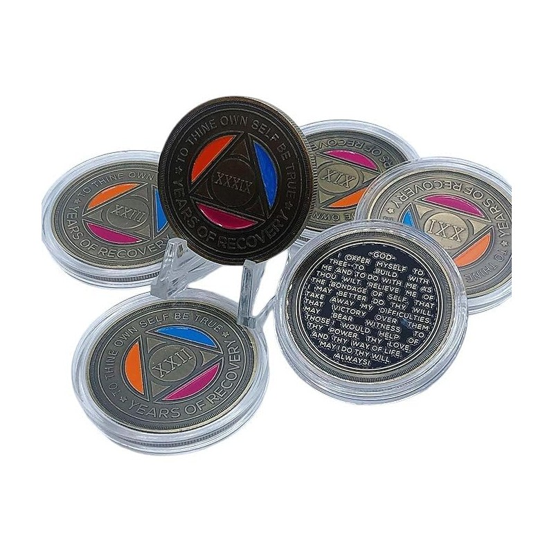 - Each of these sober chips comes in its own coin capsule holder. These won't just be AA chips thrown into a small baggy. They will come protected.